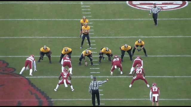When Missouri was in 11 personnel they preferred running Support, or toward a trey look. (Trey means a tight end and two receivers on the same side.) This allows the slot to handle the flat defender and the tight end to stay in the box.