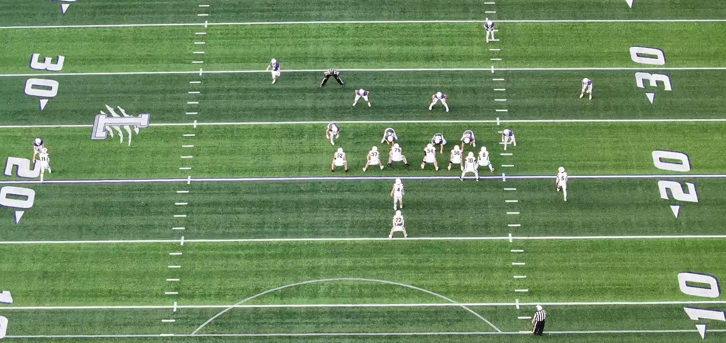 So along with putting wide zone down the list, we got out of 12 personnel and back to our 11 personnel spread sets. We used wide splits by our receivers to create a clearer picture for our quarterback.