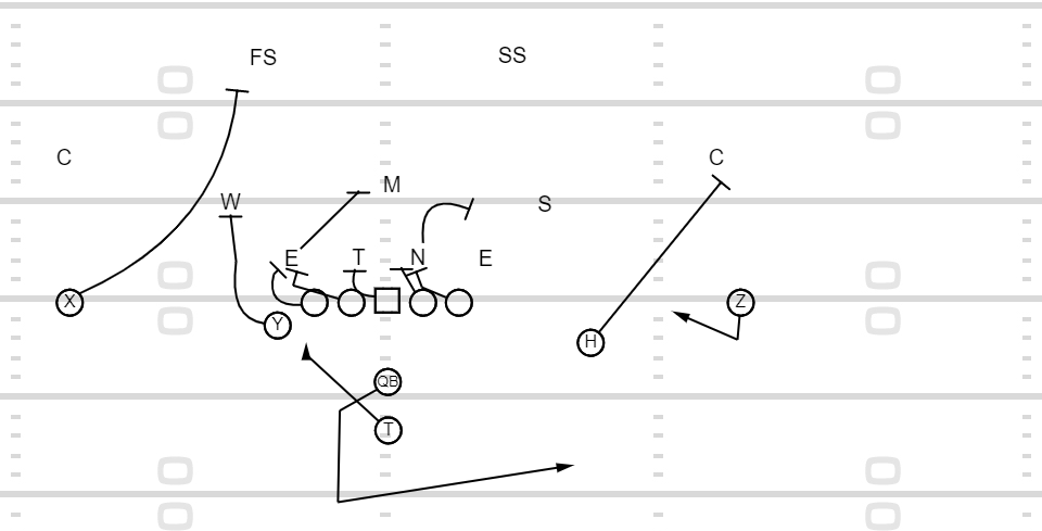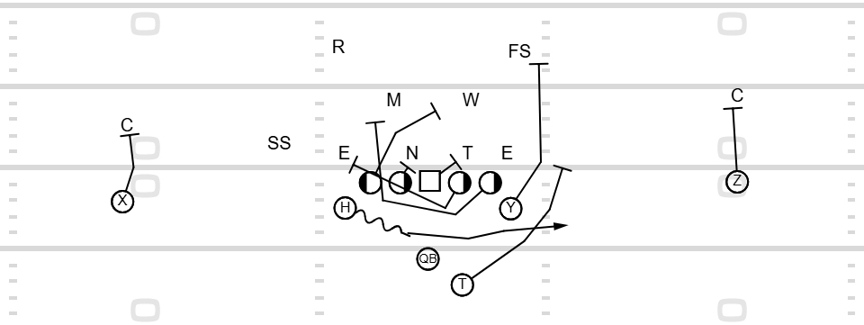 In our Wide Zone system, that’s the Keeper. In the Wing-T, it’s Waggle.