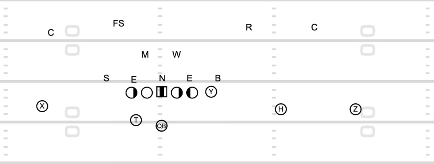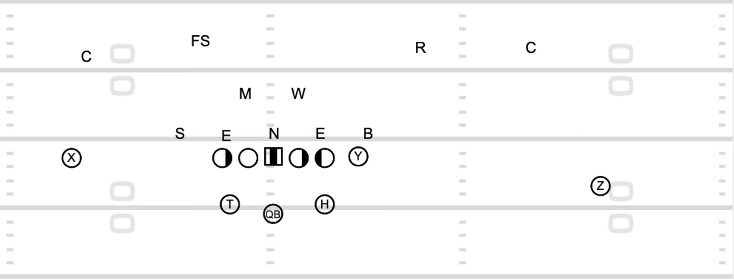 Let’s say this week we are playing a balanced 3-4. So our goal is to stress them by giving them more 3x1 looks.