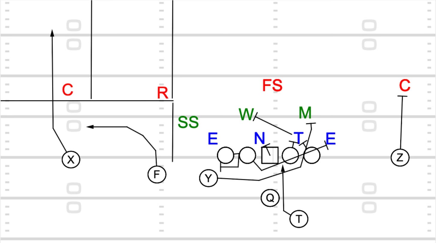 The quarterback meshes with the back and reads that safety. If he comes downhill hard, the quarterback pulls and throws a boundary post or glance route right into the void the safety just vacated. If the safety rotates back, you hand it off.